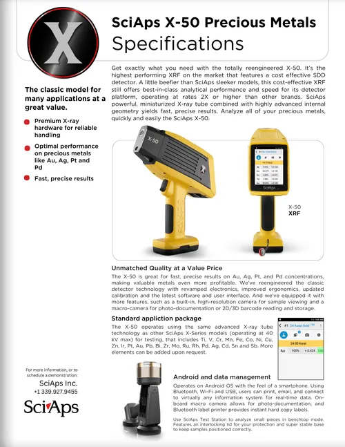 X-50非常适合在Au、Ag、Pt和Pd浓度上快速、精确地获得结果,使有价值的金属更加有利可图。