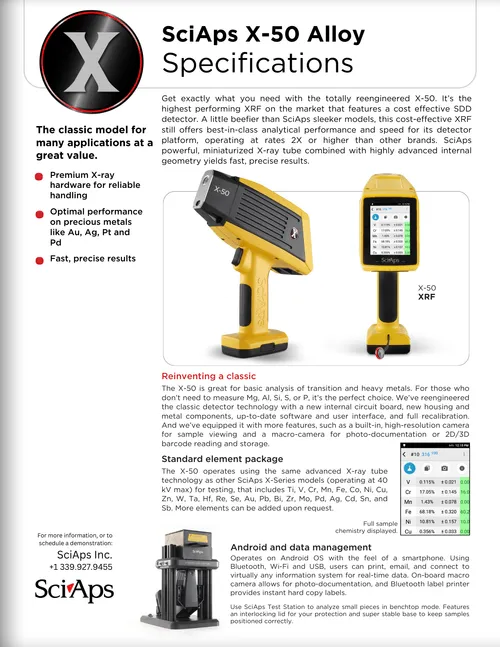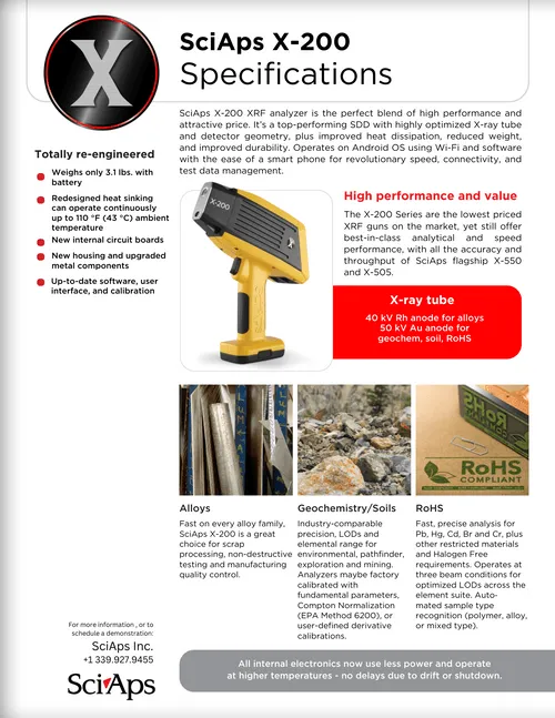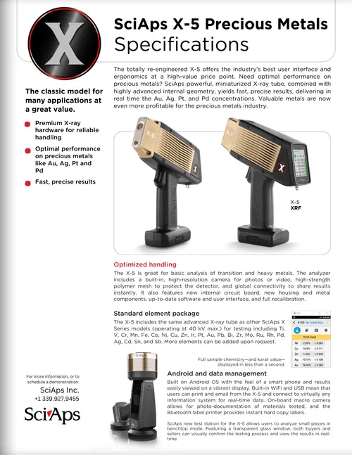 SciAps X-5为具有成本效益的SDD二极管探测器平台提供一流的分析性能和速度,其运行速率为2倍或高于其他品牌