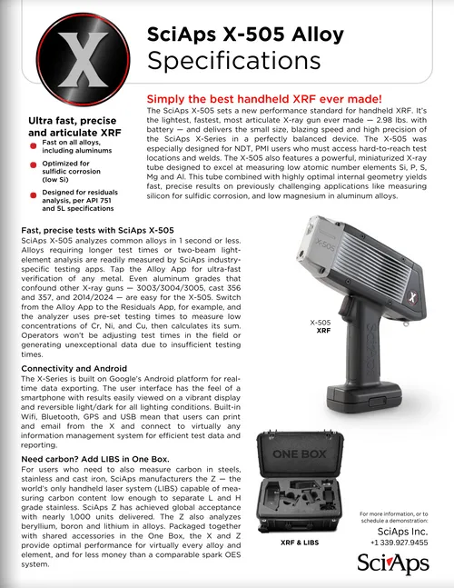 SciAps X-505为手持式XRF设定了新的性能标准。它是有史以来最轻、最快、最清晰的X射线枪!