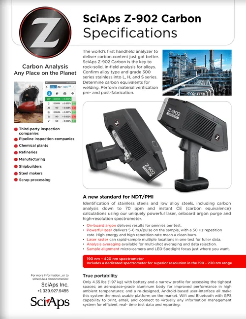 高效的专用手持式LIBS,仅用于碳和硅测量。它是手持式XRF的完美补充,它测量钢材、L级和H级不锈钢的C + Si。超紧凑,重量为3.87磅,手柄像XRF。
