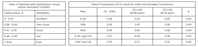 | Table 2 Published weld classification versus carbon equivalent numbers. |